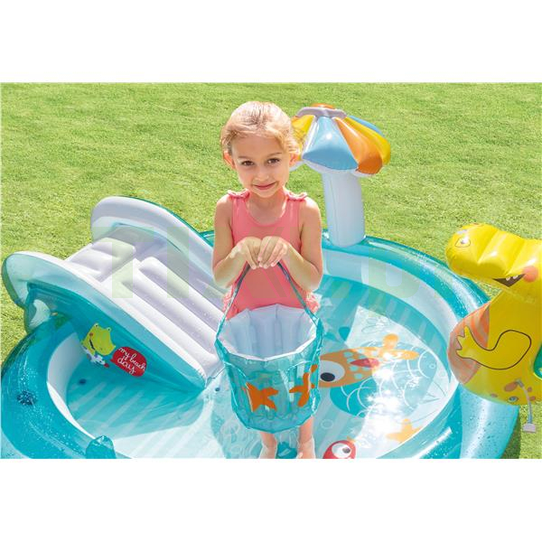 W zestawie znajdują się dmuchane dodatki, takie jak kaczka czy też wiaderko rybaka, które umilą każde chwile spędzone podczas kąpieli. Dmuchanym kołem można rzucać do celu.