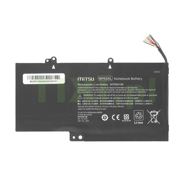 Zamiennik: 760944-141, 760944-221, 760944-241, 760944-421, 760944-421-18, 760944-541, 761230-005, HP011401-PRR13G01, HSTNN-LB6L, HSTNN-UB6L, J8C75PA, NP03, NP03043XL, NP03043XL-PR, NP03XL, NPO3, NPO3XL, TPN-Q146, TPN-Q147, TPN-Q148, TPN-Q149
