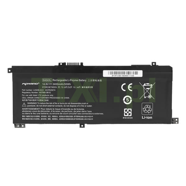 Zamiennik: HSTNN-0B1F, HSTNN-0B1G, HSTNN-OB1F, HSTNN-OB1G, HSTNN-UB7U, L43248-421, L43248-541, L43248-AC1, L43248-AC2, L43248-AC4, L43266-800, L43267-005, N55629-005, SA04055X, SA04055XL, SA04055XL-PL, SA04XL