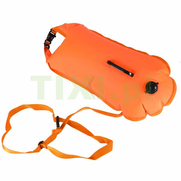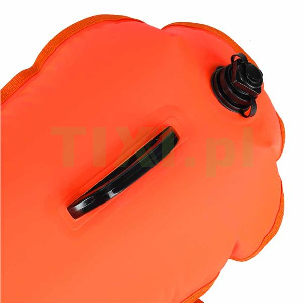 Jedną z największych zalet bojki jest sucha kieszeń. Pojemność komory to aż 28 litrów, co pozwala bezpiecznie przechować dokumenty, klucze, telefon, odzież lub ręcznik. Bojka do pływania z wodoodporną kieszenią została wyposażona w system rolowania oraz klamry boczne, które zabezpieczają zawartość przed wilgocią. Dzięki temu nawet podczas intensywnego treningu na wodach otwartych Twoje rzeczy pozostają suche i bezpieczne.