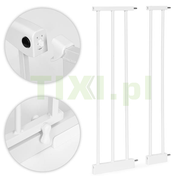 Dzięki dołączonym do zestawu dodatkowym elementom możesz wydłużyć konstrukcję, bramka oferuje regulację szerokości w zakresie od 74 do 105 cm, co pozwala na idealne dopasowanie do różnych szerokości przejść i schodów. Dodatkowo, do regulacji możesz posłużyć się również śrubami mocującymi (8 cm), które pozwolą ci dopasować długość konstrukcji co do centymetra.
