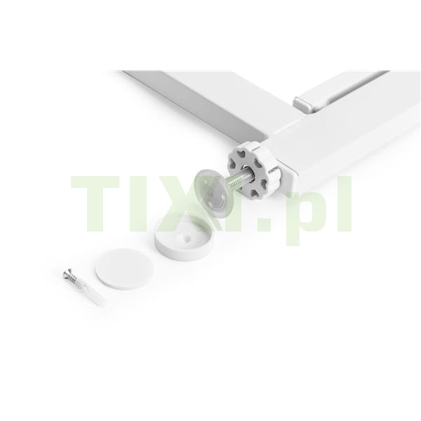 Montaż bramki jest niezwykle prosty i nie wymaga użycia żadnych narzędzi ani wiercenia otworów w ścianach czy futrynach. Dzięki 4-punktowemu systemowi mocowania rozporowego, bramka stabilnie trzyma się na miejscu, nie powodując uszkodzeń powierzchni. Dodatkowo, dołączone do zestawu podkładki zabezpieczające chronią ściany i podłogę przed ewentualnymi zarysowaniami, zapewniając estetyczny wygląd pomieszczeń.