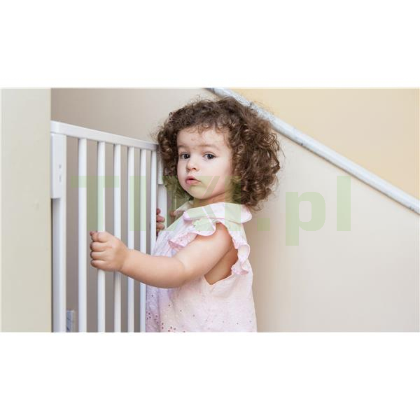 Bramka została wyposażona w specjalny mechanizm zabezpieczający, który uniemożliwia jej otwarcie przez małe dzieci. Aby otworzyć bramkę, należy jednocześnie wcisnąć przycisk i pociągnąć go do siebie. Mechanizm ten jest jednocześnie intuicyjny i wygodny w codziennym użytkowaniu, pozwalając na szybkie otwieranie i zamykanie barierki jedną ręką, co jest niezwykle praktyczne, zwłaszcza gdy trzymasz dziecko lub inne przedmioty.