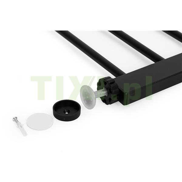 Montaż bramki jest niezwykle prosty i nie wymaga użycia żadnych narzędzi ani wiercenia otworów w ścianach czy futrynach. Dzięki 4-punktowemu systemowi mocowania rozporowego, bramka stabilnie trzyma się na miejscu, nie powodując uszkodzeń powierzchni. Dodatkowo, dołączone do zestawu podkładki zabezpieczające chronią ściany i podłogę przed ewentualnymi zarysowaniami, zapewniając estetyczny wygląd pomieszczeń.