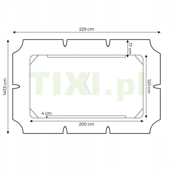 Poszycie wykonano z wytrzymałego materiału jakim jest poliester (160 g), ten rodzaj tworzywa charakteryzuje się wysoką wytrzymałością i jest dedykowany do użytku zewnętrznego. Materiał został dodatkowo pokryty warstwą PA (poliakrylan), która zabezpiecza jego kolor przed działaniem promieni UV i sprawia że całość jest odporna na deszcz.