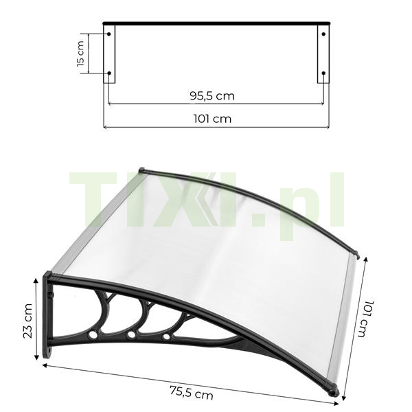 Daszek należy zamocować z wykorzystaniem dołączonych do zestawu metalowych, wytrzymałych kotew, 4 punktowe mocowanie zapewni właściwe, solidne połączenie ze ścianą budynku. Montaż można wykonać samodzielnie, całość nie zajmie więcej niż 1,5 godziny.