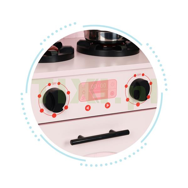 Kuchnia wyposażona jest w obrotowe pokrętła, które pozwalają na symulowanie obsługi kuchenki i piekarnika. Dzieci mogą regulować temperaturę, zmieniać ustawienia palnika, co pozwala im na tworzenie zabawkowych potraw, bez ryzyka oparzenia. To doskonała okazja do kreatywnej zabawy i eksperymentowania w bezpiecznym otoczeniu.