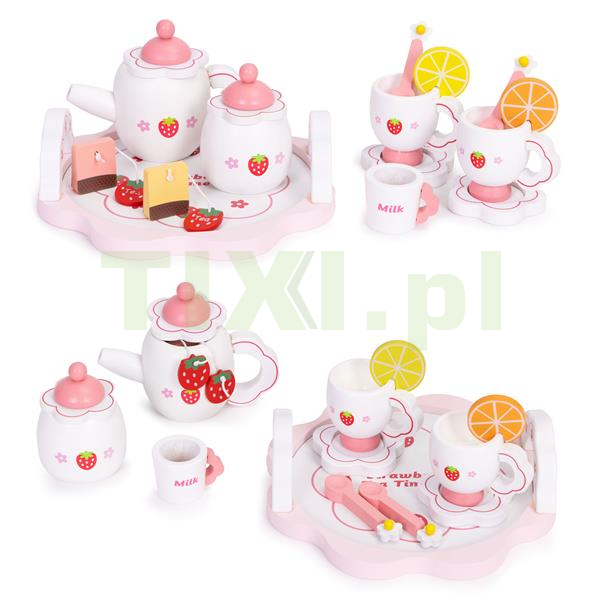 Drewniany zestaw ECOTOYS to uroczy sposób na wprowadzenie malucha w świat kreatywnej zabawy. Zestaw składa się z 14 starannie wykonanych elementów – od dzbanka i filiżanek, aż po plasterki cytryny i pojemniczek na cukier. Dziewczęcy motyw z truskawkami przyciąga uwagę i pobudza wyobraźnię. Dziecko może zaprosić rodzinę, lalki lub misie na popołudniową herbatkę, odgrywając scenki pomagające w nauce ról i empatii. Zestaw idealnie pasuje do zabawkowej kuchni, kawiarenki czy sklepiku – daje mnóstwo możliwości zabawy. Wszystkie elementy wykonano z naturalnego, bezpiecznego drewna, co zapewnia estetykę oraz trwałość. To doskonały sposób na budowanie relacji, rozwijanie wyobraźni oraz naukę współdziałania w przyjaznej formie.
