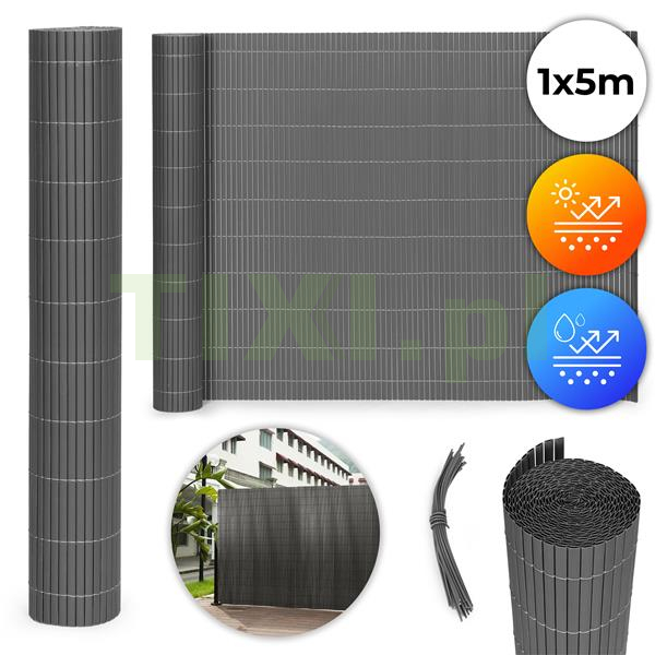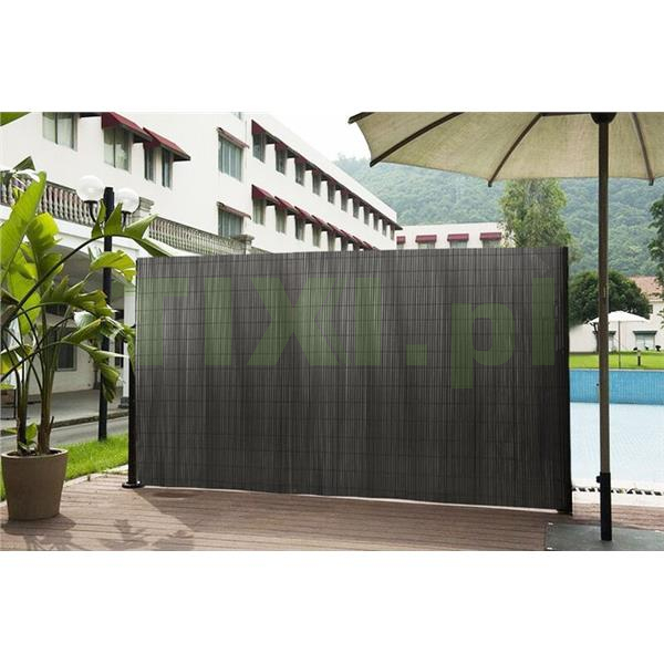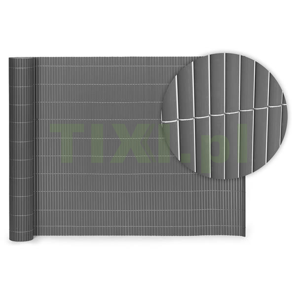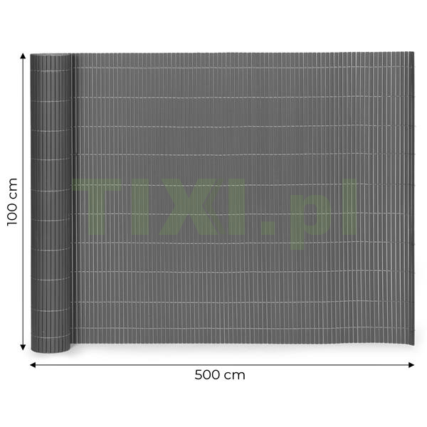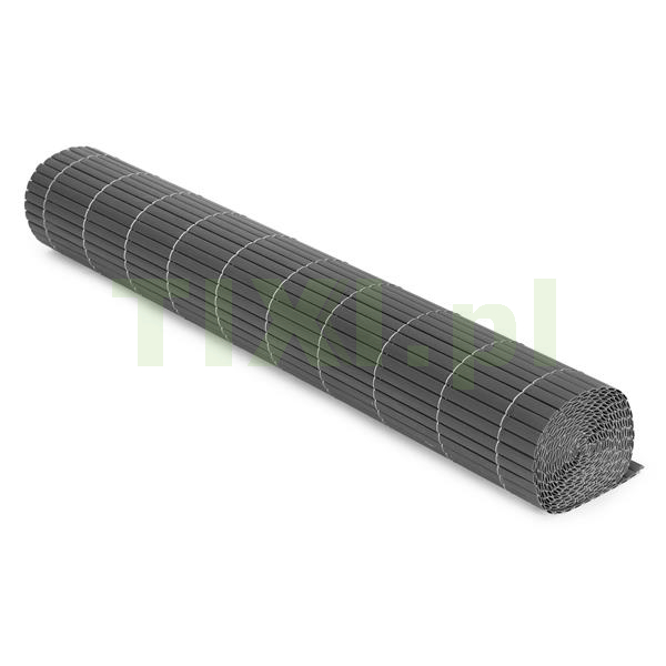 Mata bambusowa została wykonana z wytrzymałego tworzywa PVC, dzięki czemu jest odporna na działanie promieniowania UV, nie nasiąka wodą podczas deszczu i skutecznie chroni przed podmuchami wiatru, zwiększając komfort użytkowania. Struktura imitująca naturalny bambus w eleganckim antracytowym kolorze sprawia, że mata pełni nie tylko funkcję praktycznej osłony, ale także estetycznego elementu aranżacji przestrzeni.