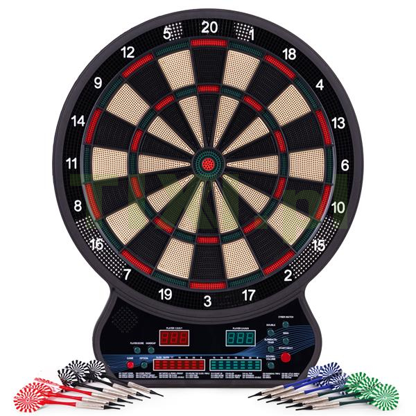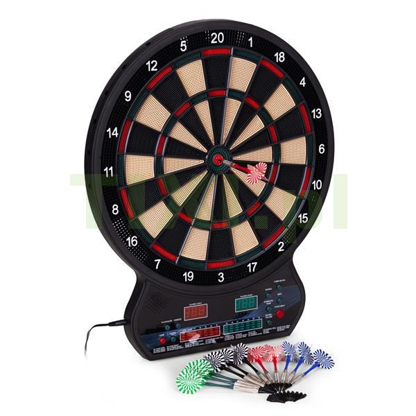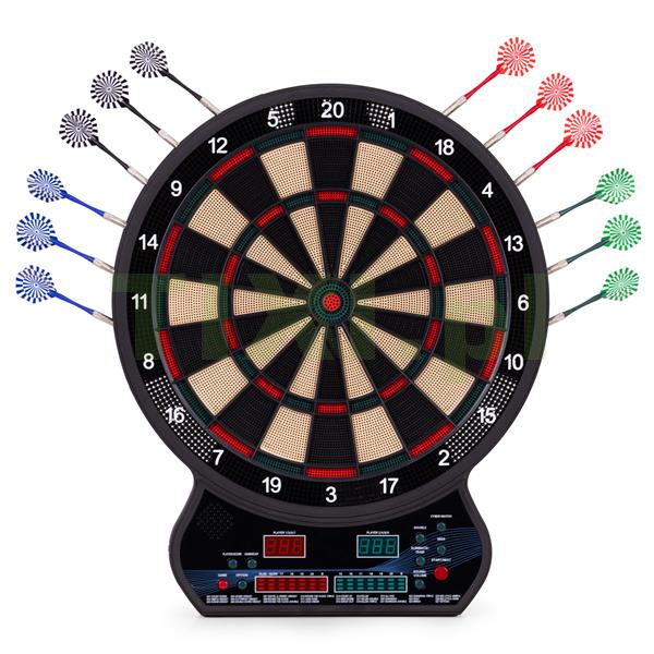 Intuicyjny panel sterowania umożliwia szybki wybór spośród aż 27 gier i 202 wariantów rozgrywki. Znajdziesz tu znane i lubiane tryby, takie jak Count Down, Cricket, Gotcha, Round Clock czy Shanghai, a także bardziej zaawansowane opcje, w tym Cybermatch (gra przeciwko komputerowi) oraz Handicap (regulacja poziomu trudności dla każdego gracza osobno). Dzięki dwóm wyświetlaczom LED, które pokazują punkty i aktywnego gracza, oraz wbudowanym komunikatom głosowym, każda rozgrywka przebiega dynamicznie oraz bez zbędnych przerw. Całość uzupełnia dołączona instrukcja w języku polskim, która krok po kroku opisuje zasady poszczególnych gier – wystarczy włączyć tarczę, wybrać tryb i rozpocząć emocjonującą zabawę!