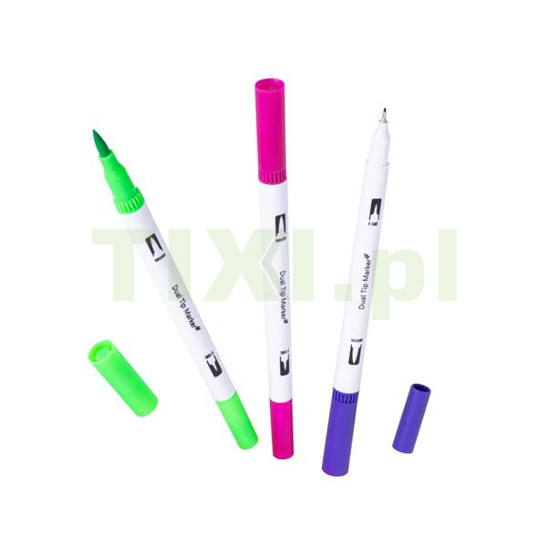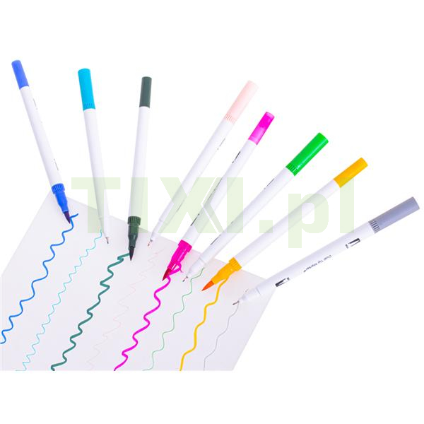 Każdy z pisaków posiada dwie końcówki na dwóch końcach – z jednej strony znajduje się cienkopis o szerokości 0.4 mm, pozwalający na precyzyjne tworzenie konturów oraz pisanie, a z drugiej mazak o szerokości 1 – 2 mm, którym błyskawicznie pokryjesz duże połacie kartki!
