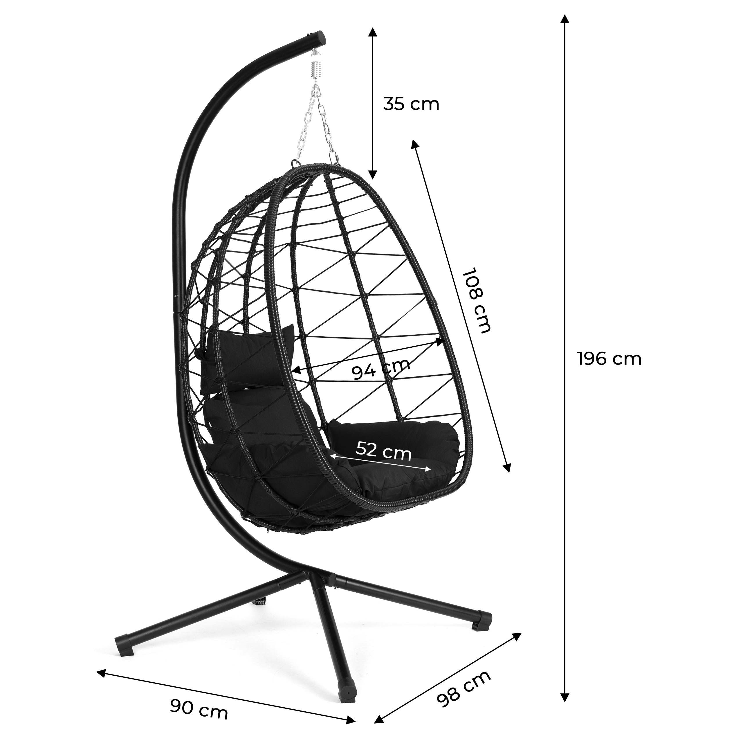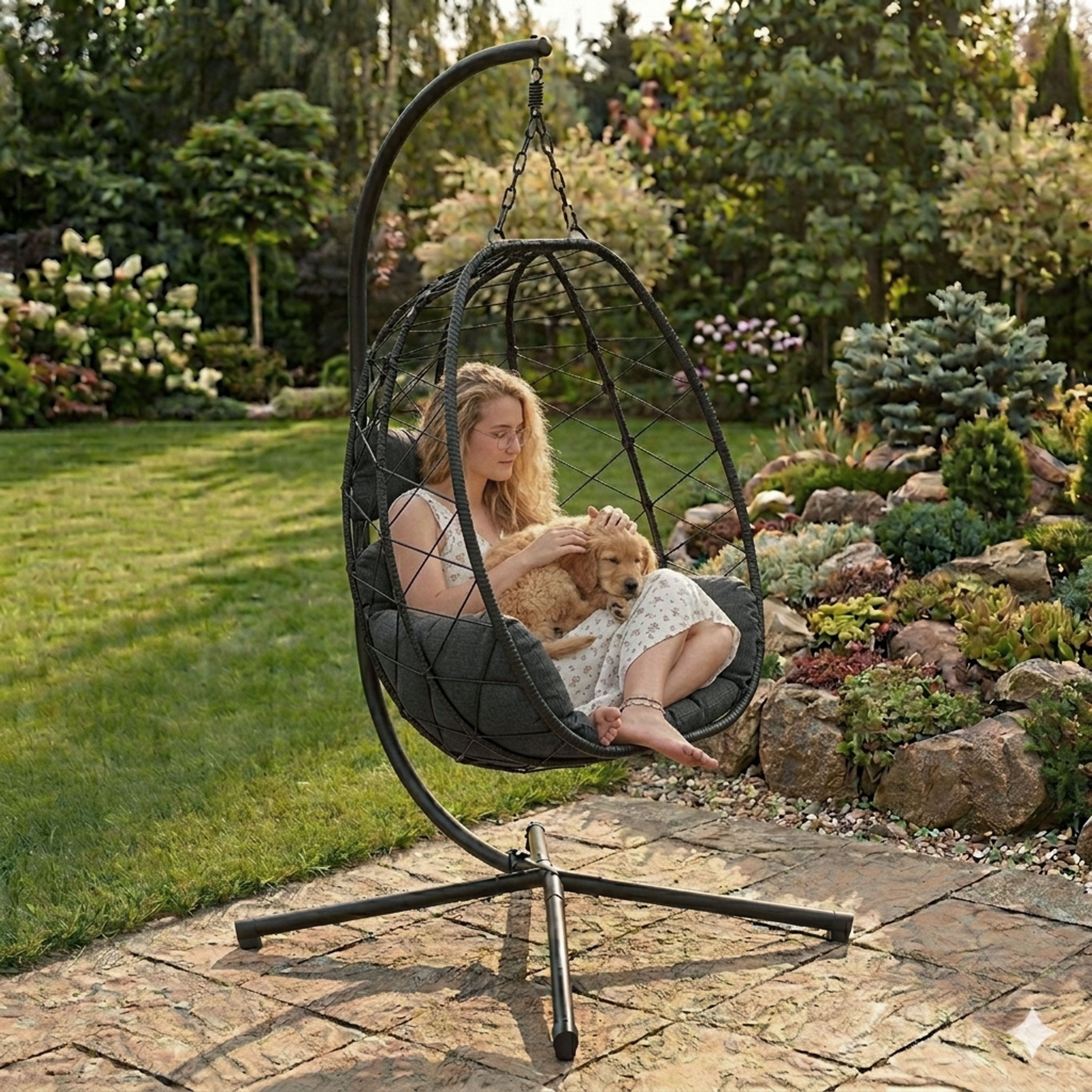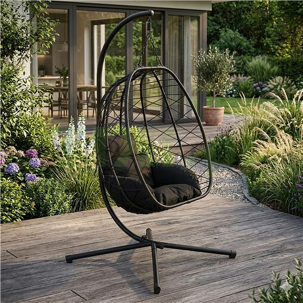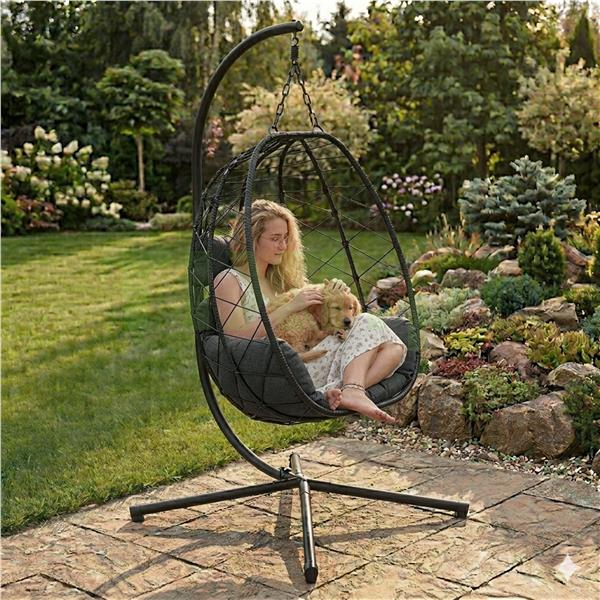 Unikalny kształt kokonu sprawia, że ten fotel wiszący to znacznie więcej niż zwykłe siedzisko – to stylowy element aranżacji, który tworzy otulającą, przytulną formę, zapewniając poczucie prywatności i komfortu w każdym wnętrzu. Delikatne kołysanie w połączeniu z miękkimi poduszkami sprawia, że fotel staje się ulubionym miejscem relaksu – nie tylko ze względu na wygląd, ale i wygodę użytkowania. To mebel, który pozwala naprawdę odpocząć – z klasą i w dobrym stylu.