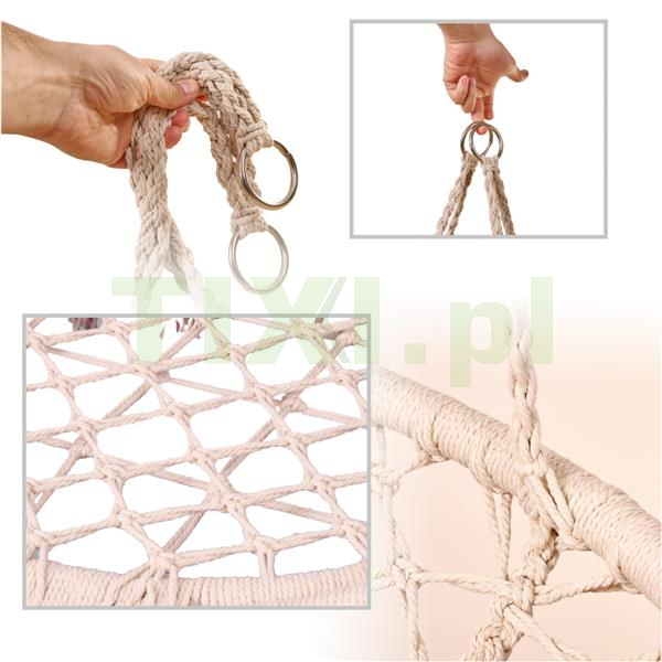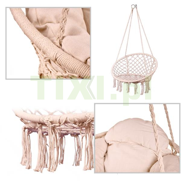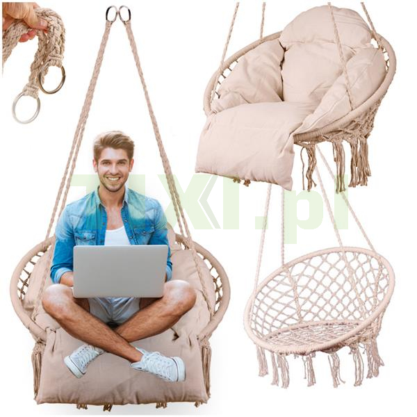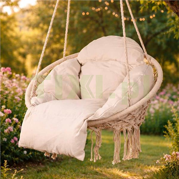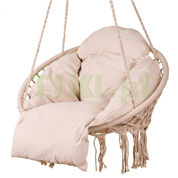 Stworzona z myślą o Twoim komforcie, zapewnia idealne ułożenie ciała, a miękka poduszka dodatkowo potęguje przyjemność huśtania się. Jej jasna kolorystyka nie tylko podkreśli urok Twojego ogrodu, ale także stanie się efektownym dodatkiem do wnętrza domu. Wykonana z wytrzymałych materiałów i wyposażona w mocne liny, huśtawka bez trudu wytrzyma ciężar do 150 kilogramów.