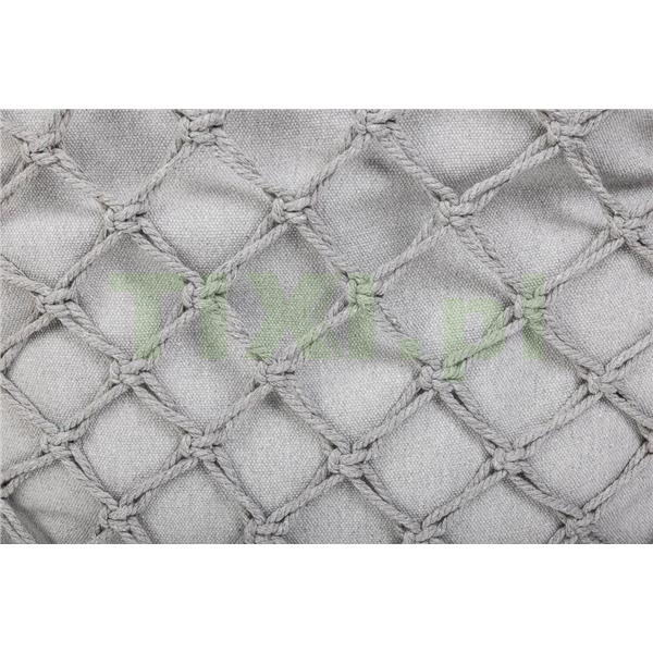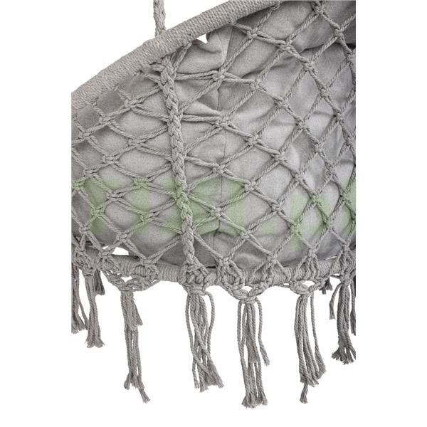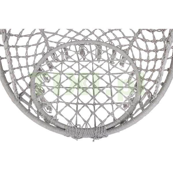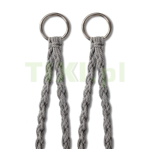 bawełniane liny, metalowy stelaż, poduszka z bawełny i poliestru