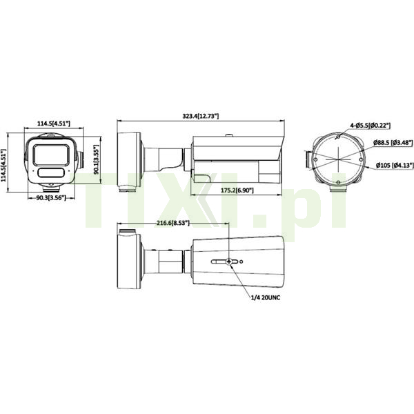 | Wymiary | 323,4 mm × 114,5 mm × 114,5 mm (12,73" × 4,51" × 4,51") |