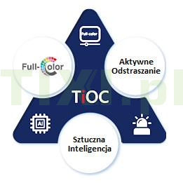 | Wybrane funkcje: | Aktywne odstraszanie intruzów działa na zasadzie migającego niebieskiego i czerwonego światła oraz dźwięku syreny lub komunikatów głosowych |