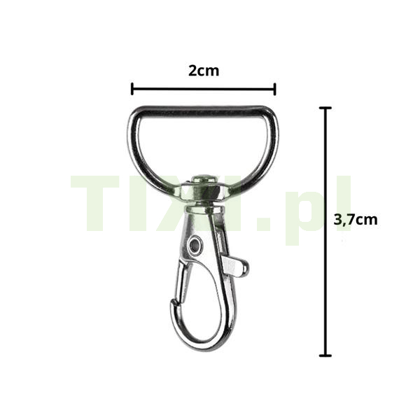 • Wymiary karabińczyka: 3,7 cm x 2 cm