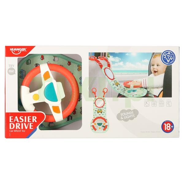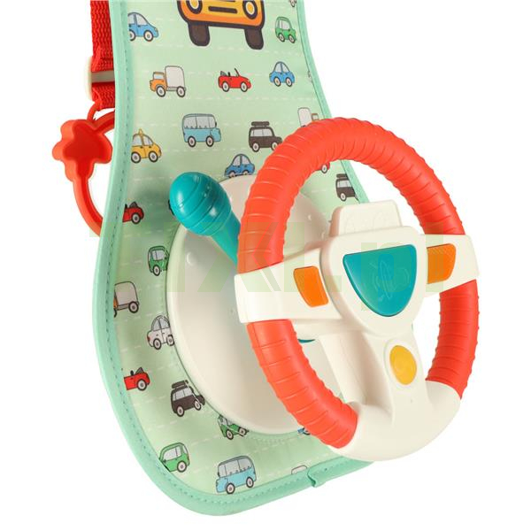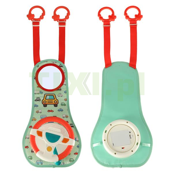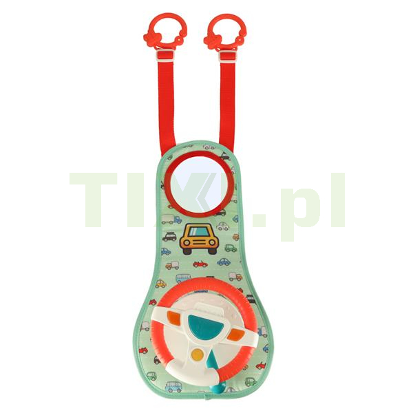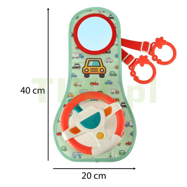 Składa się z kierownicy z 4 przyciskami i sensoryczną manetką oraz plastikowego, bezpiecznego lusterka. Elementy zostały umieszczone na sztywnej podkładce pokrytej przyjemnym materiałem z motywem samochodzików.