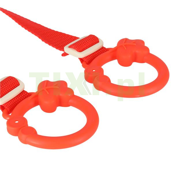 Zabawkę przymocujesz do zagłówków przedniego siedzenia przy pomocy plastikowych kółek umieszczonych na regulowanych pasach.