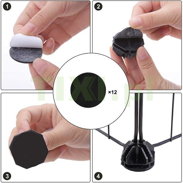 Antypoślizgowe podkładki dołączone do zestawu skutecznie zabezpieczają kojec przed przesuwaniem się po gładkiej powierzchni, takiej jak panele czy płytki. Dzięki temu zwierzak może się swobodnie poruszać, a zagroda pozostaje stabilna. To rozwiązanie zapewnia bezpieczeństwo i komfort użytkowania każdego dnia.