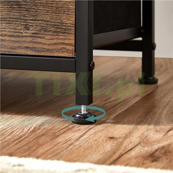 Regulowane nóżki to funkcjonalny element, który umożliwia precyzyjne wypoziomowanie komody na każdej powierzchni. Dzięki nim mebel zawsze stoi stabilnie, bez ryzyka przechyłów czy chwiania. To proste, ale niezwykle praktyczne rozwiązanie zapewnia pełen komfort użytkowania i dbałość o estetykę wnętrza.