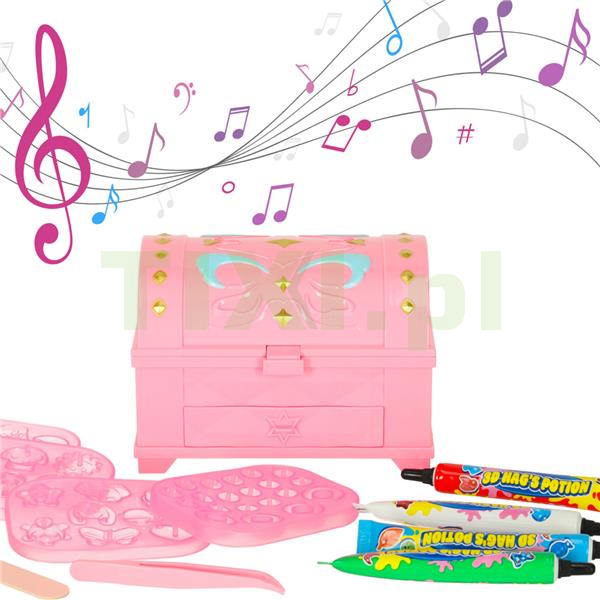 „Magiczne Pudełko” to kreatywny zestaw, który pozwala dziecku stworzyć własną biżuterię z kolorowego kleju, rozwijając przy tym zdolności manualne, kreatywność i poczucie estetyki.