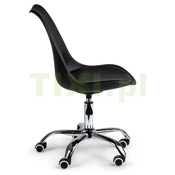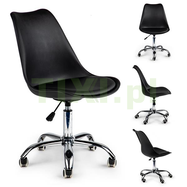 Do prawidłowego funkcjonowania podczas pracy przy biurku potrzebne jest krzesło, które umożliwi nam długą komfortową pracę przed komputerem. Krzesło obrotowe marki ModernHome jest idealnym rozwiązaniem dla biur, domowych stanowisk pracy lub recepcji w salonach usługowych. Czarna kolorystyka z chromowanymi dodatkami sprawdzi się idealnie w nowoczesnych wnętrzach.