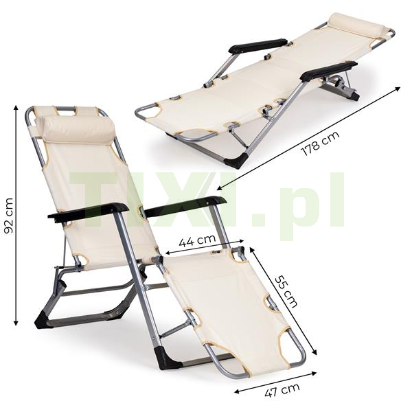 Leżak posiada możliwość złożenia go w leżankę. Dzięki przemyślanej konstrukcji wystarczy chwila, aby zamienić go w wygodną leżankę, idealną do odpoczynku na świeżym powietrzu.