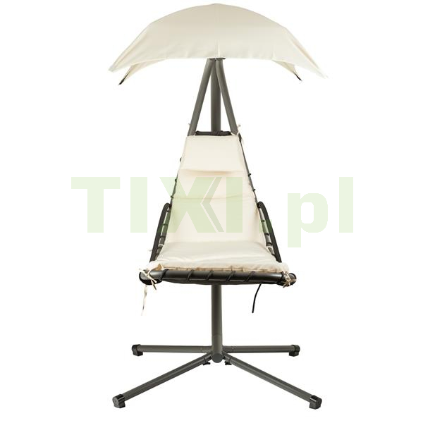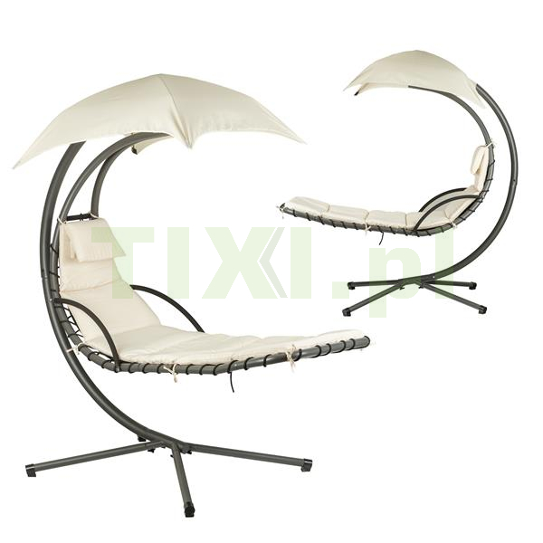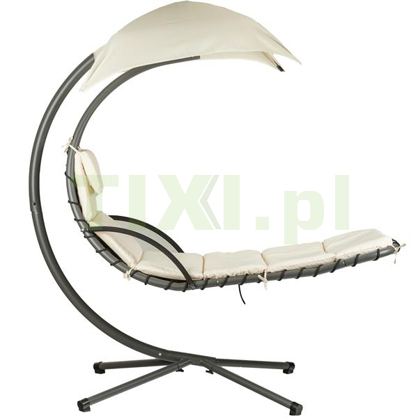 Wisząca leżanka zawdzięcza swoją stabilność i bezpieczeństwo odpowiednio wyprofilowanemu stelażowi, który pozwala na kołysanie i huśtanie na leżaku. Duży, regulowany daszek zapewni przyjemny cień podczas upalnych dni, a lekkie bujanie dodatkowo umili nam czas na spędzony na zewnątrz. Wodoodporny, miękki materac z zagłówkiem gwarantuje komfortowy wypoczynek.