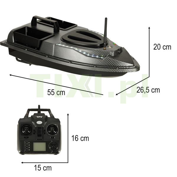 Technologia GPS pozwala zaprogramować punkt startowy, do którego łódź automatycznie wraca po zakończeniu pracy. Zasięg kontrolera wynoszący aż 500 metrów daje pełną swobodę manewrowania nawet na dużych zbiornikach wodnych. Prędkość do 5,4 km/h zapewniają dwa wydajne silniki, co pozwala szybko i efektywnie transportować przynętę.