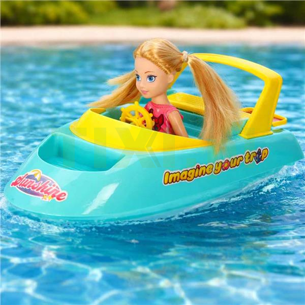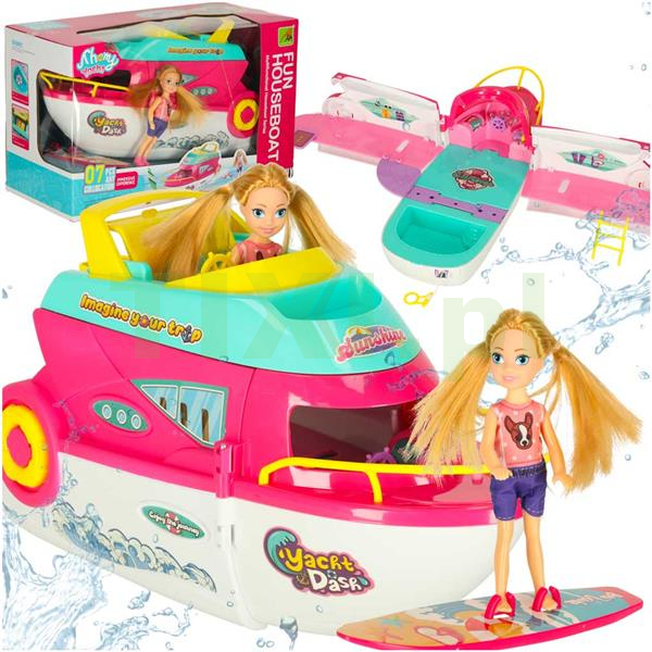 dołączona motorówka, laleczka i deska