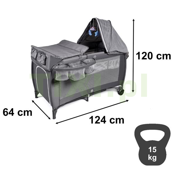 Łóżeczko ma w zestawie między innymi doczepiane drugie piętro oraz przewijak z kieszonkami. Takie udogodnienia dodają mu funkcjonalności, dzięki czemu sprawdzi się na krótkie i dłuższe wyjazdy. Konstrukcja w kształcie litery X, stopki antypoślizgowe oraz kółeczka z blokadą sprawiają, że łóżko jest praktyczne i stabilne. Przemyślanie rozplanowane kieszenie i schowki ułatwią rozpakowanie oraz organizację bagażu. Łóżko z przewijakiem zapewnia komfort przy przebieraniu i przewijaniu maluszka.