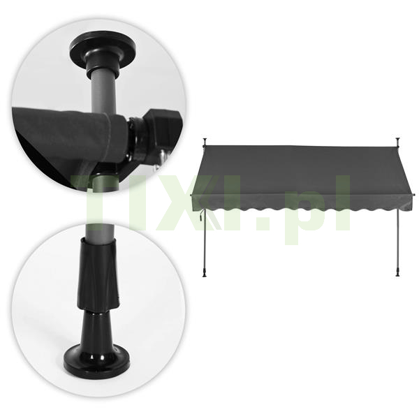 Markiza posiada antypoślizgowe nakładki, które montujemy do podłoża jak i sufitu, co gwarantuje stabilność oraz bezpieczeństwo podczas jej użytkowania. Dodatkowo dzięki systemowi montażu bez wiercenia i kołkowania, instalacja markizy jest niezwykle prosta i szybka, co pozwala na jej natychmiastowe użytkowanie.