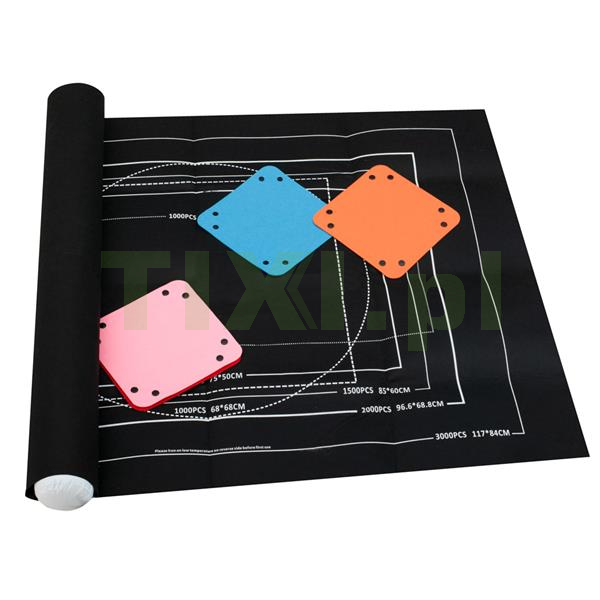 Mata w całości została wykonana z poliestru strukturą przypominającego filc. Posiada białe ramki, które pokazują jak dużą powierzchnię zajmie ułożony wzór.
