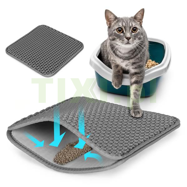 Wystarczy, że ustawisz ją przed kuwetą, a wychodzący z niej kot pozostawi resztki żwirku na macie. Zabrudzenia wpadną przez specjalne oczka górnej warstwy i zbiorą się w środku maty. Dzięki temu utrzymasz porządek wokół kuwety.