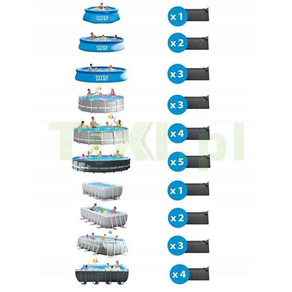 Mata umożliwia przyłączenie do niej węży o średnicy 32 mm, ale wyposażona jest dodatkowo w przejściówki, dzięki którym podłączysz także węże o średnicy 38 mm. Do jej poprawnego działania konieczne jest podłączenie pompy wody o wydajności nie większej niż 5678 l/h.