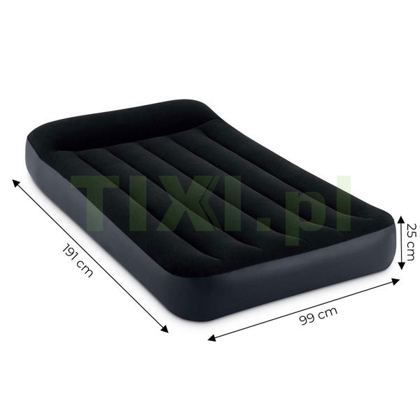 Wykonany z wytrzymałego tworzywa PVC został pokryty przyjemnym w dotyku, wodoodpornym materiałem welurowym. Uniwersalna, ciemna kolorystyka sprawia, że będzie pasował do każdego rodzaju wnętrza. Dzięki wbudowanej pompce w prosty i szybki sposób napompujesz materac, wystarczy kilka chwil, aby materac samoczynnie się napompował.