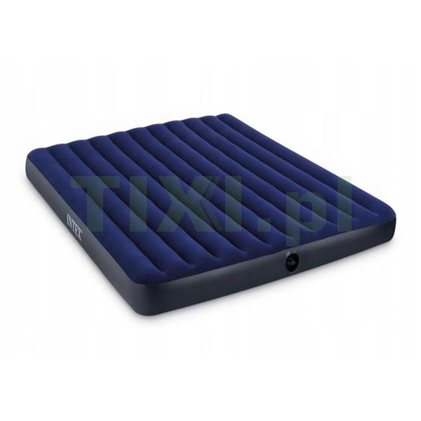 Materac welurowy INTEX o wymiarach 203x183x25 cm jest idealny do wypoczynku 2 osób. Wykonany z wytrzymałego tworzywa PVC, na górze został pokryty przyjemnym w dotyku, wodoszczelnym materiałem welurowym. Całość w przyjemnej, granatowej kolorystyce będzie pasowała do każdego wnętrza. Zawór bostoński pozwoli w minutę spuścić powietrze, następnie złożyć materac i schować go do szafy.