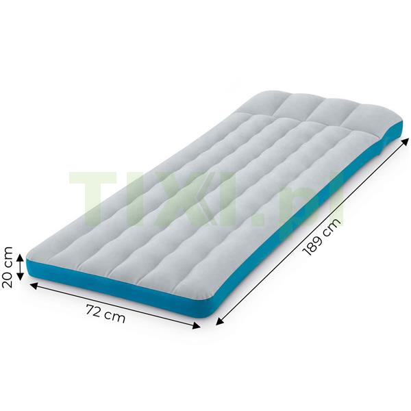 Materac dmuchany INTEX 67998 to idealne rozwiązanie w każdej sytuacji – świetnie sprawdzi się jako tymczasowe łóżko dla gości, wygodne miejsce do spania w podróży, a także jako komfortowe posłanie na kempingu czy w domku letniskowym. Dzięki odpowiednim wymiarom i solidnej konstrukcji zapewnia wysoki komfort snu dla jednej osoby dorosłej, bez ryzyka zapadania się czy utraty powietrza. Błyskawiczne pompowanie i kompaktowe przechowywanie sprawiają, że jest to praktyczny oraz uniwersalny wybór dla każdego, kto ceni wygodę oraz mobilność.