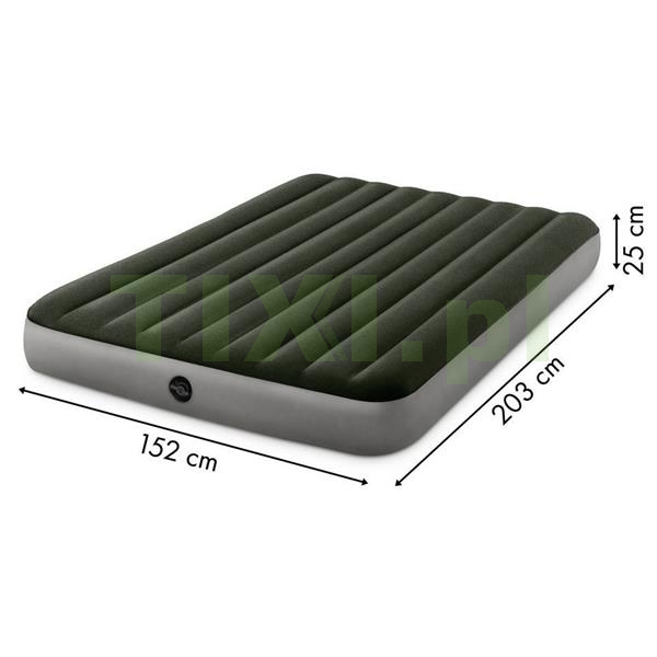 Materac welurowy INTEX o wymiarach 203x152x25 cm jest idealny do wypoczynku 2 osób. Wykonany z wytrzymałego tworzywa PVC, na górze został pokryty przyjemnym w dotyku, wodoszczelnym materiałem welurowym. Całość w przyjemnej, zielonej kolorystyce będzie pasowała do każdego wnętrza.