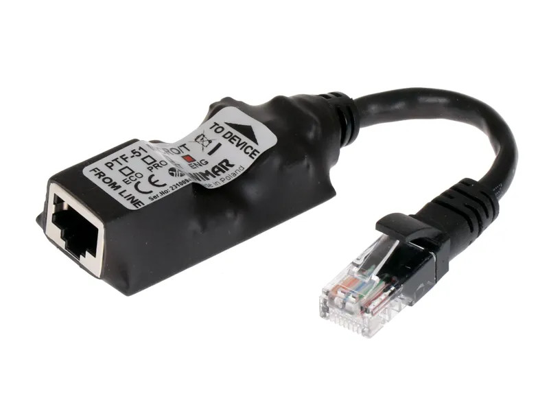 | Złącze wyjściowe (strona chroniona) | Przewód z wtykiem RJ-45 |