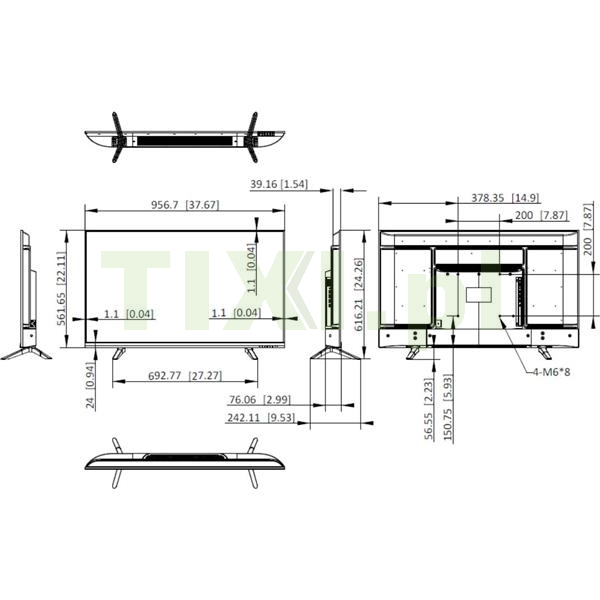 | Wymiary produktu (szer. × wys. × gł.) | Bez podstawy: 37,67" × 22,11" × 2,99" |