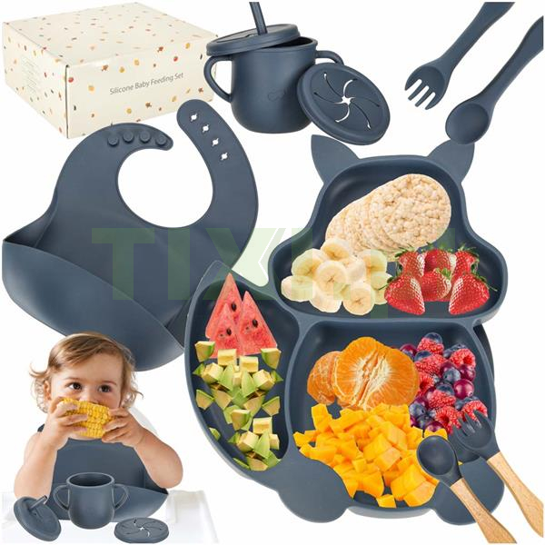 bezpieczeństwo przede wszystkim – zestaw jest wykonany z silikonu wolnego od BPA, dzięki czemu bez obaw możesz na nim podać jedzenie swojemu dziecku