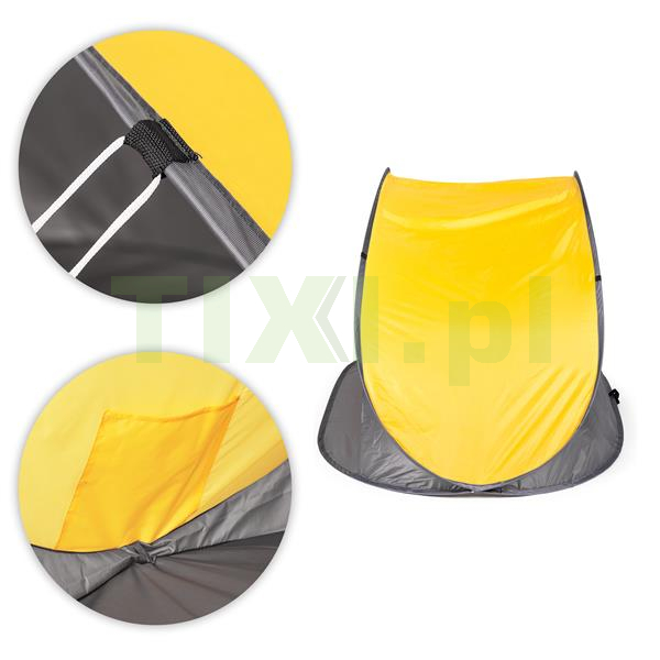 Namiot posiada specjalną kieszonkę umieszczoną wewnątrz namiotu, idealną na przechowywanie telefonu, kluczy lub drobnych akcesoriów. Dzięki niej najpotrzebniejsze rzeczy możesz mieć zawsze pod ręką, bez ryzyka, że zginą w piasku lub będą narażone na słońce.