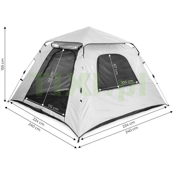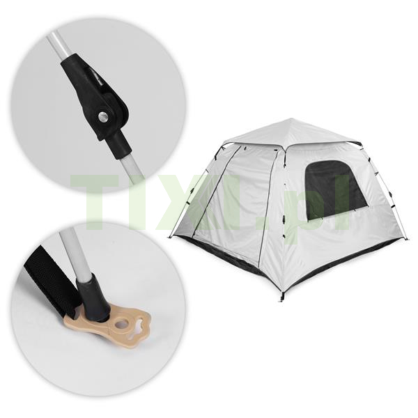 Namiot wyposażono w automatyczny system rozkładania, który pozwala na szybkie oraz bezproblemowe rozstawienie konstrukcji – bez użycia narzędzi. Wystarczy unieść centralną część stelaża i wyprostować przegubowe złącza, aby konstrukcja nabrała pełnej stabilności. Zastosowanie stali i włókna szklanego, a także przemyślana budowa mechanizmu gwarantują jego płynne działanie i solidne usztywnienie całego namiotu.