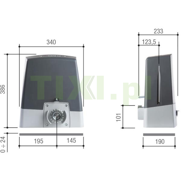 BKX08AGF to szybki napęd przeznaczony do bram przesuwnych o wadze do 800kg, z silnikiem bezszczotkowym 24VDC z prędkością przesuwu do 24 m/min. Centrala sterująca posiada wyświetlacz graficzny z menu w języku POLSKIM. Ponadto wyposażona jest w technologię CXN BUS oraz Adaptive Speed & Torque Technology, obsługuje programowanie przez CAME KEY, Sama centrala umożliwia zapisanie aż 1000 użytkowników [piloty/kody dostępu/breloki].