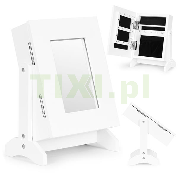 Pudełko na biżuterię, funkcjonalnym lustrem, to z całą pewnością świetny pomysł na trafiony prezent. Pomieści dużą ilość naszyjników, pierścionków, bransoletek i kolczyków. Tapicerowane wnętrze dodaje uroku i elegancji, a zewnętrzne lustro pomoże w wybraniu dodatków, a nawet przy wykonywaniu makijażu.