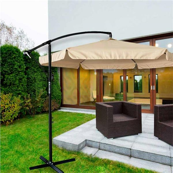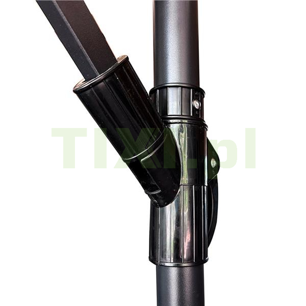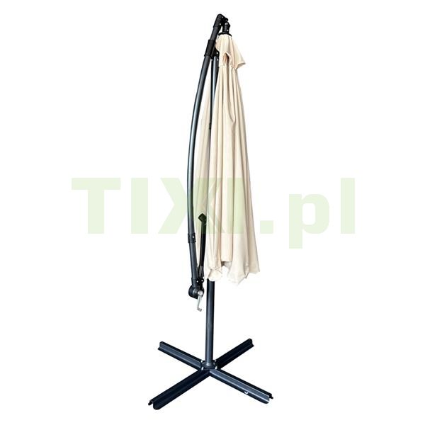 Parasol ogrodowy został wyposażony w masywną konstrukcję ze stali malowanej proszkowo, co zapewnia wyjątkową odporność na czynniki atmosferyczne. Trwała konstrukcja, oparta na bocznym wsporniku, gwarantuje stabilność nawet przy silniejszych podmuchach wiatru.