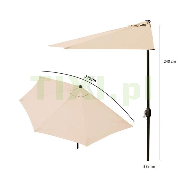 Jeśli chcesz stworzyć zacienione, chronione miejsce w niewielkiej przestrzeni, nasz funkcjonalny parasol będzie doskonałym rozwiązaniem. Dzięki półokrągłej czaszy, możesz ustawić go tuż przy ścianie co sprawia, że parasol idealnie sprawdzi się na wąskich balkonach czy tarasach.