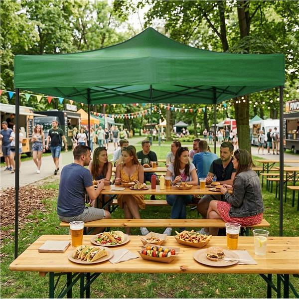 Automatyczny pawilon ogrodowy to praktyczne rozwiązanie dla osób, które potrzebują szybkiego i wygodnego zadaszenia w różnych sytuacjach. Sprawdzi się w ogrodzie, przy lokalu usługowym, podczas rodzinnych uroczystości, targów, festynów i innych wydarzeń plenerowych. Duża powierzchnia pozwala stworzyć komfortową strefę dla gości, klientów lub wyposażenia, a możliwość ustawienia ścianek ułatwia dopasowanie przestrzeni do aktualnych warunków i potrzeb. To model stworzony z myślą o funkcjonalności, mobilności i łatwej organizacji miejsca w plenerze. Dzięki dołączonej torbie transportowej namiot można wygodnie przewozić i przechowywać, co zwiększa jego użyteczność zarówno w zastosowaniach prywatnych, jak i komercyjnych. To uniwersalny wybór wszędzie tam, gdzie liczy się szybkie przygotowanie osłoniętej przestrzeni.